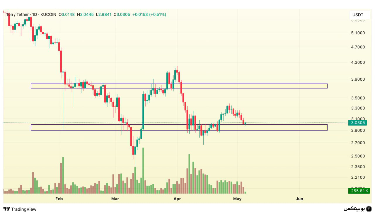 تون کوین: تونکوین دارای سطح حمایتی بین ۲.۹ تا ۳ دلار است. همچنین محدوده مقاومتی آن در بازه ۳.۷ تا ۳.۸ دلار قرار دارد. این نقاط میتوانند معیارهایی برای بررسی واکنش قیمت باشند.