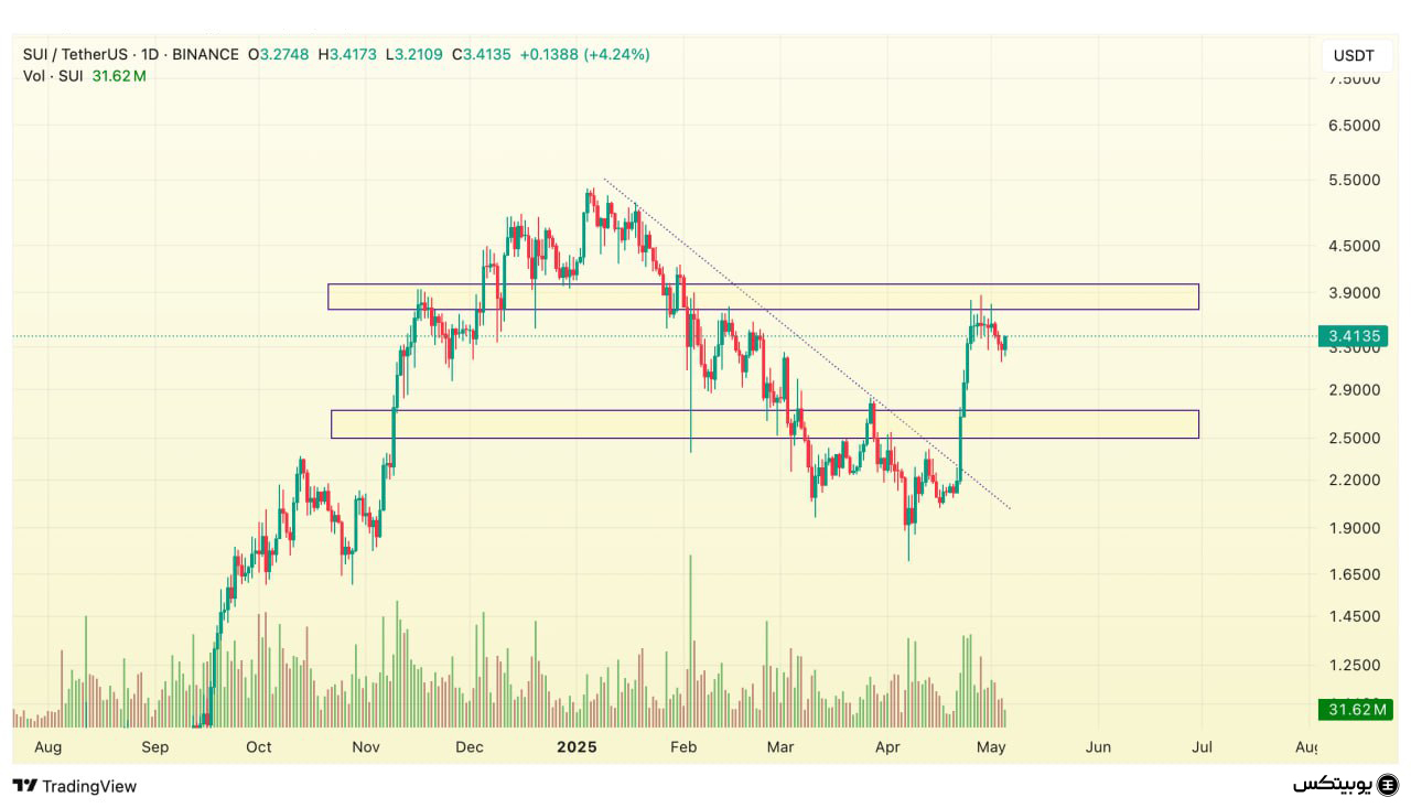 سویی: سطح مقاومتی سویی بین ۳.۷ تا ۴ دلار قرار دارد. در سوی دیگر، ناحیه حمایتی آن از ۲.۵ تا ۲.۷ دلار تعریف شده است. این محدودهها میتوانند چارچوبی برای تحلیل رفتار قیمت ارائه دهند.