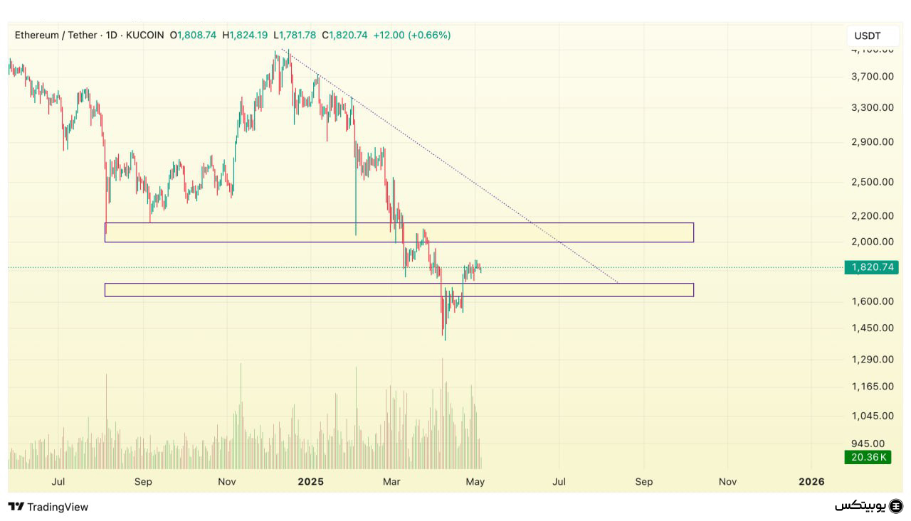 اتریوم: برای اتریوم، ناحیه حمایتی میان ۱,۶۳۰ تا ۱,۷۲۰ دلار مشخص شده است. همچنین، مقاومت اصلی آن بین ۲,۰۰۰ تا ۲,۱۵۰ دلار قرار دارد. این سطوح میتوانند در تصمیمگیری معاملهگران نقش کلیدی داشته باشند.
