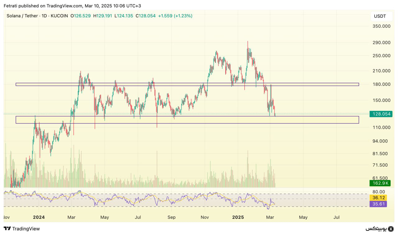سولانا محدوده حمایتی خود را در بازه ۱۱۵ تا ۱۲۵ دلار دارد. در صورتی که قیمت به این ناحیه برسد، میتوان انتظار برگشت قیمت را داشت. همچنین، محدوده مقاومتی سولانا در ناحیه ۱۷۵ تا ۱۸۲ دلار قرار دارد که در صورت شکست این مقاومت، امکان رشد بیشتر قیمت وجود خواهد داشت.