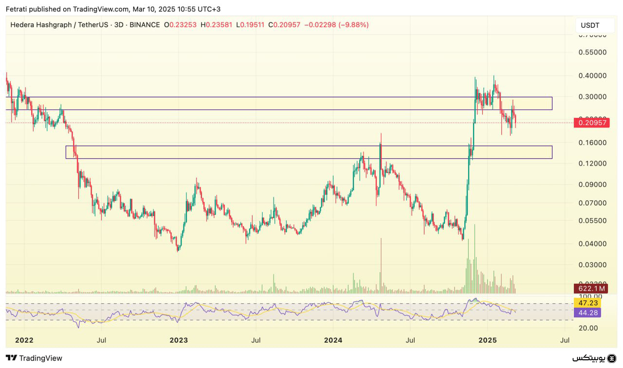 هدرا در حال حاضر با مقاومتی در سطح ۰.۲۵ تا ۰.۲۹ دلار مواجه است که در صورت عبور از این سطح، احتمال رشد بیشتر قیمت وجود خواهد داشت. همچنین، محدوده حمایتی آن در ناحیه ۰.۱۳ تا ۰.۱۵ دلار قرار دارد و اگر این سطح از دست برود، امکان کاهش قیمت به سطوح پایینتر وجود دارد.