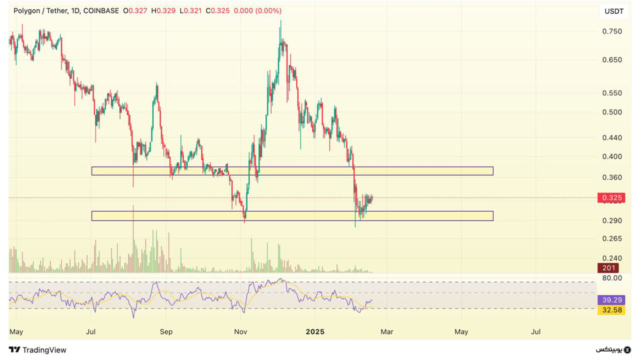 محدوده حمایتی متیک در ۰.۲۹ تا ۰.۳۰ دلار قرار دارد و حفظ این سطح میتواند از کاهش بیشتر جلوگیری کند. در صورت ادامه روند صعودی، مقاومت در محدوده ۰.۳۶ تا ۰.۳۸ دلار ممکن است مانع از رشد بیشتر شود.