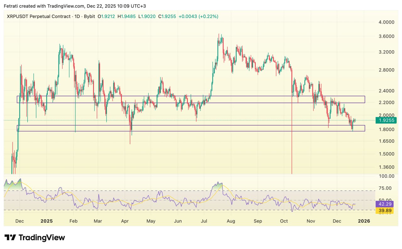 ریپل در محدودهی حمایتی ۱.۷۷ تا ۱.۸۵ در حال تثبیت است و حفظ این ناحیه میتواند از ادامهی ریزش جلوگیری کند. مقاومت کلیدی ۲.۲ تا ۲.۳ سد اصلی مسیر صعودی است و عبور از آن نشانهی بهبود روند کوتاهمدت قیمت ریپل خواهد بود.