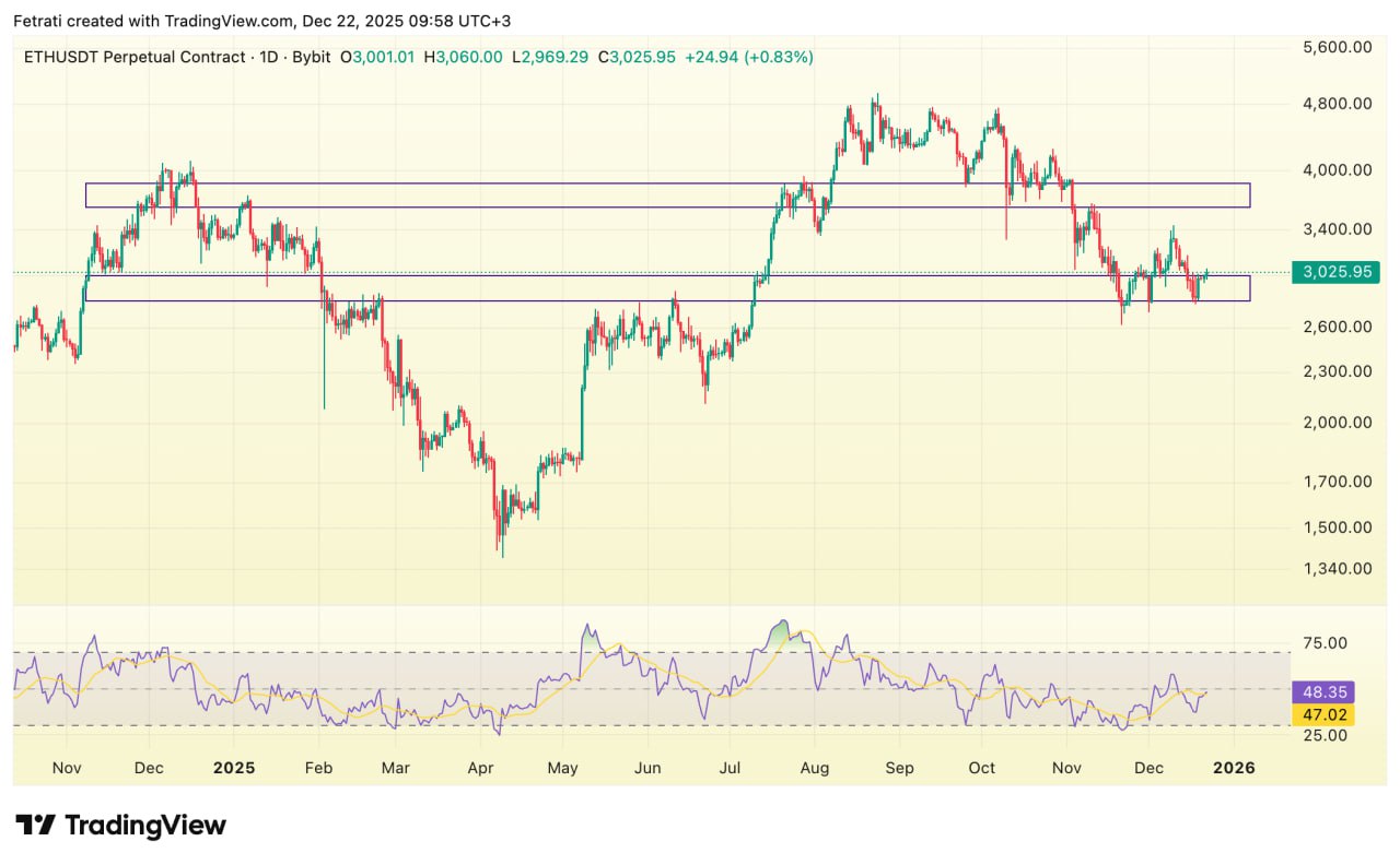 اتریوم که هفتههای قبل نشانههایی از قدرت نشان داده بود، مجدداً به زیر ۳,۰۰۰ دلار برگشته و فعلاً نقش لیدر آلتکوینها را از دست داده است؛ ادامه ضعف ETH به معنی فشار مضاعف بر کل بازار آلتها خواهد بود.