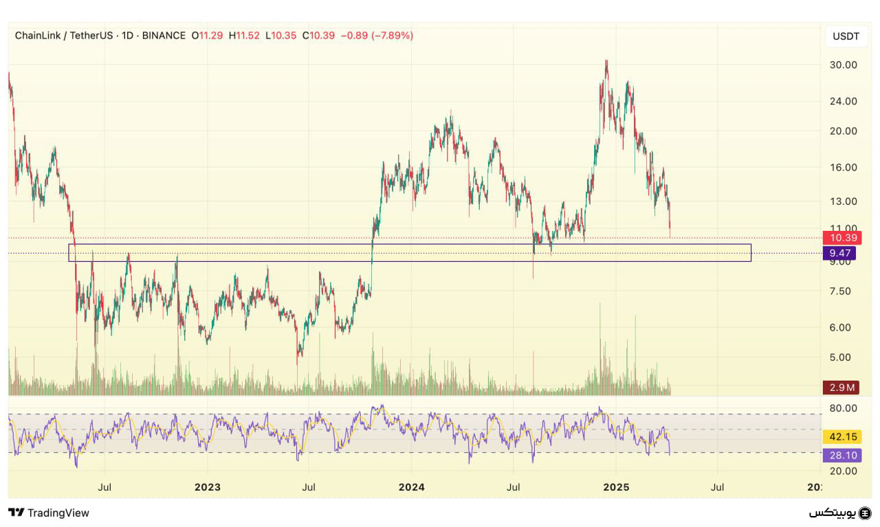 در تحلیل کلاسیک چین لینک، سطح حمایتی در بازه ۹ تا ۱۰ دلار قرار دارد و نقش پشتیبان قیمت در شرایط اصلاحی را ایفا میکند. در سوی مقابل، محدوده مقاومتی ۱۲ تا ۱۴ دلار بهعنوان مانعی جدی در مسیر صعودی شناخته میشود که عبور از آن میتواند به تقویت روند صعودی منجر شود.