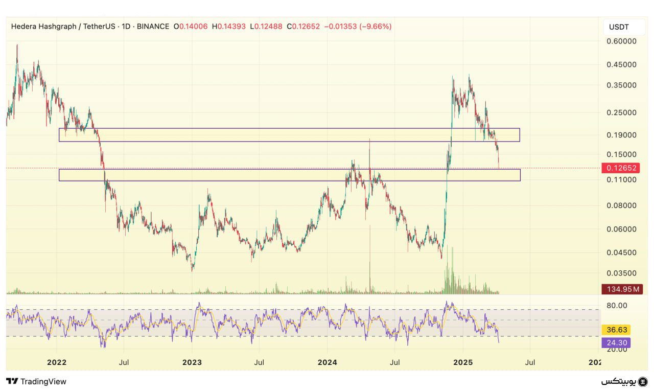 در تحلیل هدرا، محدوده ۰.۱۰ تا ۰.۱۲ دلار بهعنوان ناحیه حمایتی مورد توجه قرار میگیرد که میتواند مانع از کاهش بیشتر قیمت گردد. در سوی دیگر، سطح مقاومتی در بازه ۰.۱۵ تا ۰.۱۷ دلار قرار دارد که عبور از آن میتواند زمینهساز افزایش قیمت شود.