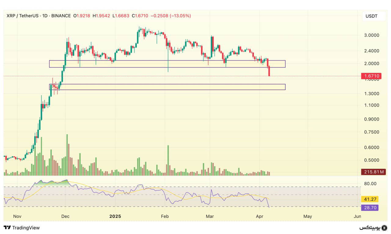 در ساختار قیمتی ریپل، محدوده ۱.۳۷ تا ۱.۴۷ دلار بهعنوان ناحیه حمایتی در نظر گرفته میشود که میتواند از ریزش بیشتر قیمت جلوگیری کند. از سوی دیگر، بازه ۱.۸۶ تا ۲ دلار بهعنوان مقاومت اصلی عمل میکند و عبور از آن نشاندهنده تسلط خریداران بر بازار خواهد بود.