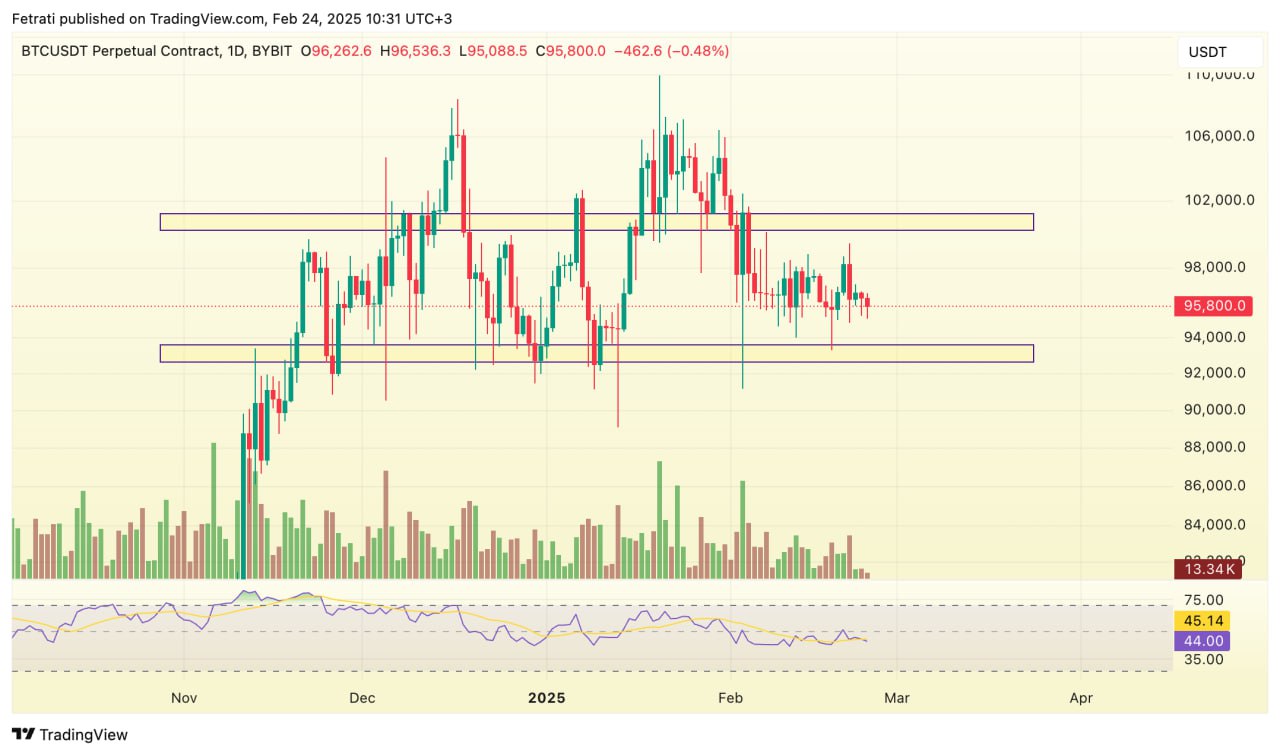 محدوده حمایتی بیتکوین در ۹۲,۵۰۰ تا ۹۳,۵۰۰ دلار قرار دارد و این سطح میتواند مانع از افت بیشتر قیمت شود. از سوی دیگر، مقاومت کلیدی بین ۱۰۰,۰۰۰ تا ۱۰۱,۰۰۰ دلار قرار گرفته که عبور از آن میتواند مسیر را برای رشد بیشتر باز کند.