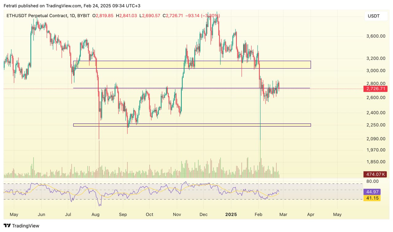 اتریوم در حال حاضر حمایت خود را در محدوده ۲۶۰۰ تا ۲۷۰۰ دلار حفظ کرده و این سطح میتواند از افت بیشتر قیمت جلوگیری کند. اما در صورت شکست محدوده ۲۶۰۰ دلار، احتمال کاهش تا محدوده ۲۲۵۰ تا ۲۳۰۰ دلار وجود دارد. از طرف دیگر، مقاومت اصلی این رمزارز بین ۳۰۰۰ تا ۳۲۰۰ دلار قرار گرفته که عبور از آن میتواند روند صعودی را تقویت کند.