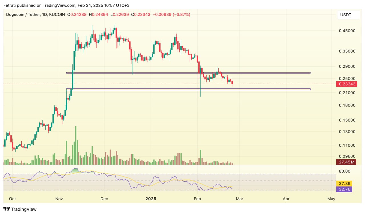 محدوده حمایتی دوجکوین بین ۰.۲۱ تا ۰.۲۲ دلار قرار دارد و میتواند از افت بیشتر قیمت جلوگیری کند. از سوی دیگر، محدوده مقاومتی آن بین ۰.۲۶ تا ۰.۲۷ دلار مشخص شده که عبور از آن میتواند باعث ادامه روند صعودی شود.