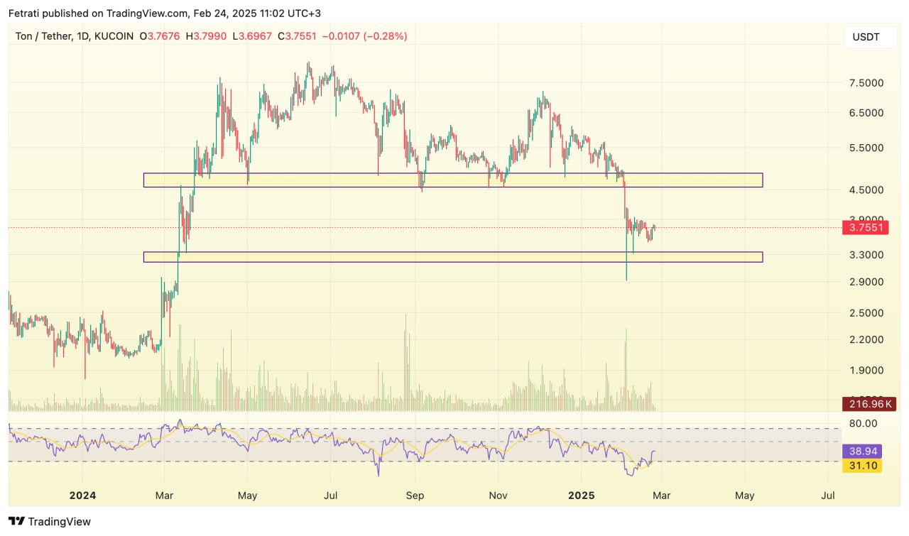 محدوده حمایتی تون کوین بین ۳.۲ تا ۳.۴ دلار در نظر گرفته شده و میتواند در برابر افت قیمت واکنش نشان دهد. در مقابل، محدوده مقاومتی آن بین ۴.۵ تا ۴.۹ دلار قرار دارد که عبور از آن میتواند مسیر رشد بیشتری را هموار کند.