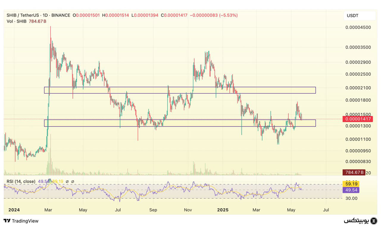 شیبا: شیبا در محدوده 0.000013 تا 0.000014 دلار از حمایت برخوردار است که حفظ آن میتواند از اصلاح بیشتر جلوگیری کند. مقاومت کلیدی در محدوده 0.000019 تا 0.000021 دلار قرار دارد. شکست این سطح مقاومتی میتواند به ادامه رشد قیمت منجر شود.