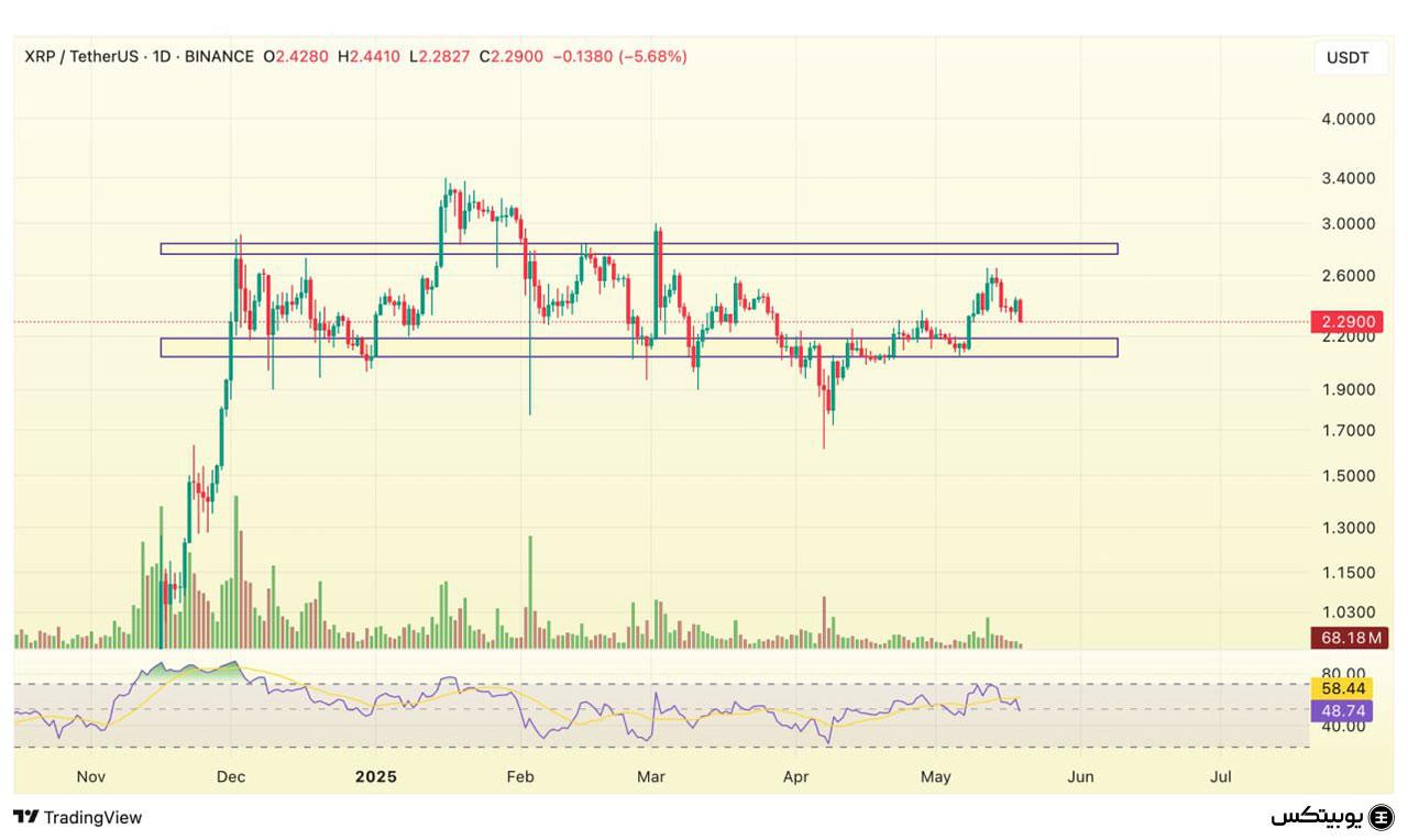 ریپل: ریپل در محدوده ۲.۰۹ تا ۲.۱۸ دلار حمایت دارد و تثبیت در این ناحیه میتواند مانع افت بیشتر قیمت شود. مقاومت مهم آن بین ۲.۷۵ تا ۲.۸۴ دلار قرار گرفته و عبور از این سطح میتواند زمینهساز رشد بیشتر باشد.