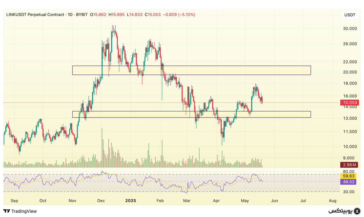 چِین لینک: چینلینک در محدوده ۱۳ تا ۱۴ دلار حمایت دارد که حفظ آن برای ادامه روند صعودی اهمیت دارد. در صورت افزایش فشار خرید، مقاومت کلیدی بین ۱۹.۵ تا ۲۱ دلار قرار دارد. عبور از این سطح میتواند راه را برای تارگتهای بالاتر هموار کند.