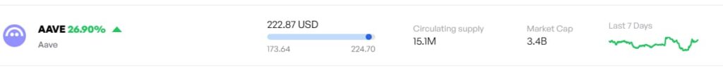 اَوِه (Aave) که در حال حاضر با قیمت ۲۲۲.۸۷ دلار و ارزش بازار ۳.۴ میلیارد دلار در حال معامله است، طی ۲۴ ساعت گذشته رشد بیش از ۲۶ درصدی را تجربه کرده است. برای رسیدن به ارزش بازار ۵ میلیارد دلار، Aave نیاز به رشد تا قیمت حدود ۳۲۷ دلار دارد. این هدف اکنون بسیار قابل دسترس به نظر میرسد.