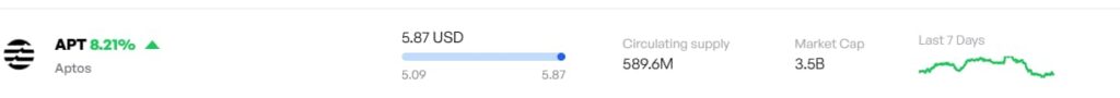 اپتوس (Aptos) که در حال حاضر با قیمت ۵.۸۷ دلار و ارزش بازار ۳.۵ میلیارد دلار در حال معامله است، برای رسیدن به ارزش بازار ۵ میلیارد دلار نیاز به افزایش ۴۲.۸۶ درصدی دارد، که قیمت آن را به حدود ۸.۴۸ دلار میرساند.