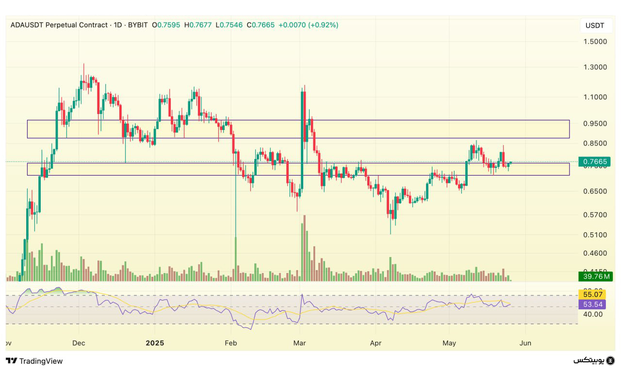 کاردانو: کاردانو در محدوده ۰.۷۱ تا ۰.۷۵ دلار دارای حمایت است و خریداران تلاش میکنند قیمت را در این بازه حفظ کنند. مقاومت مهم در بازه ۰.۸۷ تا ۰.۹۵ دلار قرار دارد که عبور از آن میتواند مسیر را برای رشد بیشتر قیمت هموار کند.