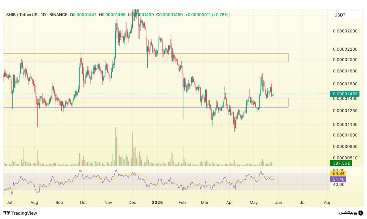 شیبا: شیبا محدوده حمایتی خود را بین ۰.۰۰۰۰۱۳ تا ۰.۰۰۰۰۱۴ دلار حفظ کرده و مقاومت مهم آن در بازه ۰.۰۰۰۰۱۹ تا ۰.۰۰۰۰۲۰ دلار قرار دارد.