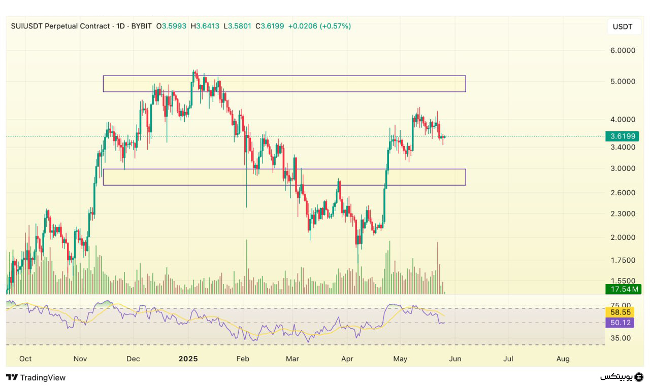 سویی: سویی حمایت خود را در بازه ۲.۸ تا ۳ دلار دارد و این سطح میتواند از ریزش بیشتر جلوگیری کند. در سمت مقابل، مقاومت این ارز بین ۴.۷ تا ۵.۲ دلار قرار دارد که عبور از آن احتمال رشد بیشتر قیمت را تقویت میکند.