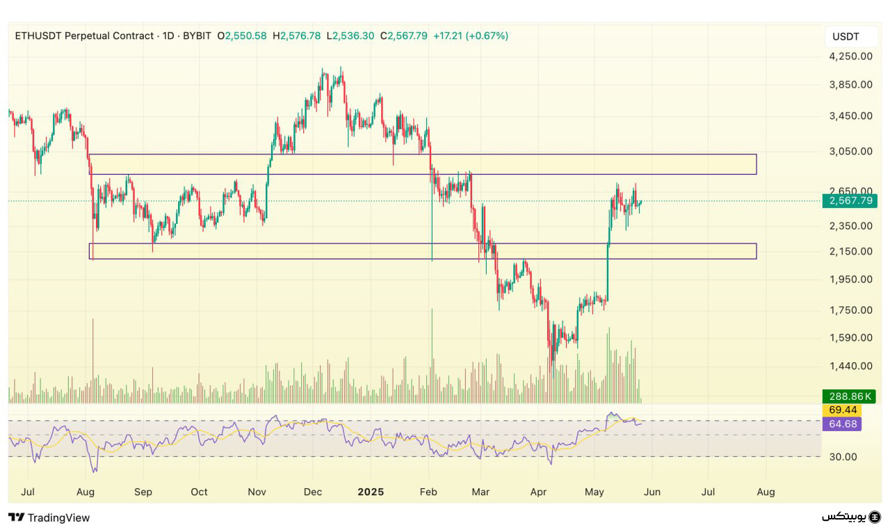 اتریوم: اتریوم در محدوده ۲۱۰۰ تا ۲۲۰۰ دلار دارای حمایت کلیدی است. در سمت مقابل، مقاومت اصلی آن بین ۲۸۰۰ تا ۳۰۰۰ دلار قرار دارد. عبور از این مقاومت میتواند مسیر را برای اهداف بالاتر هموار کند.