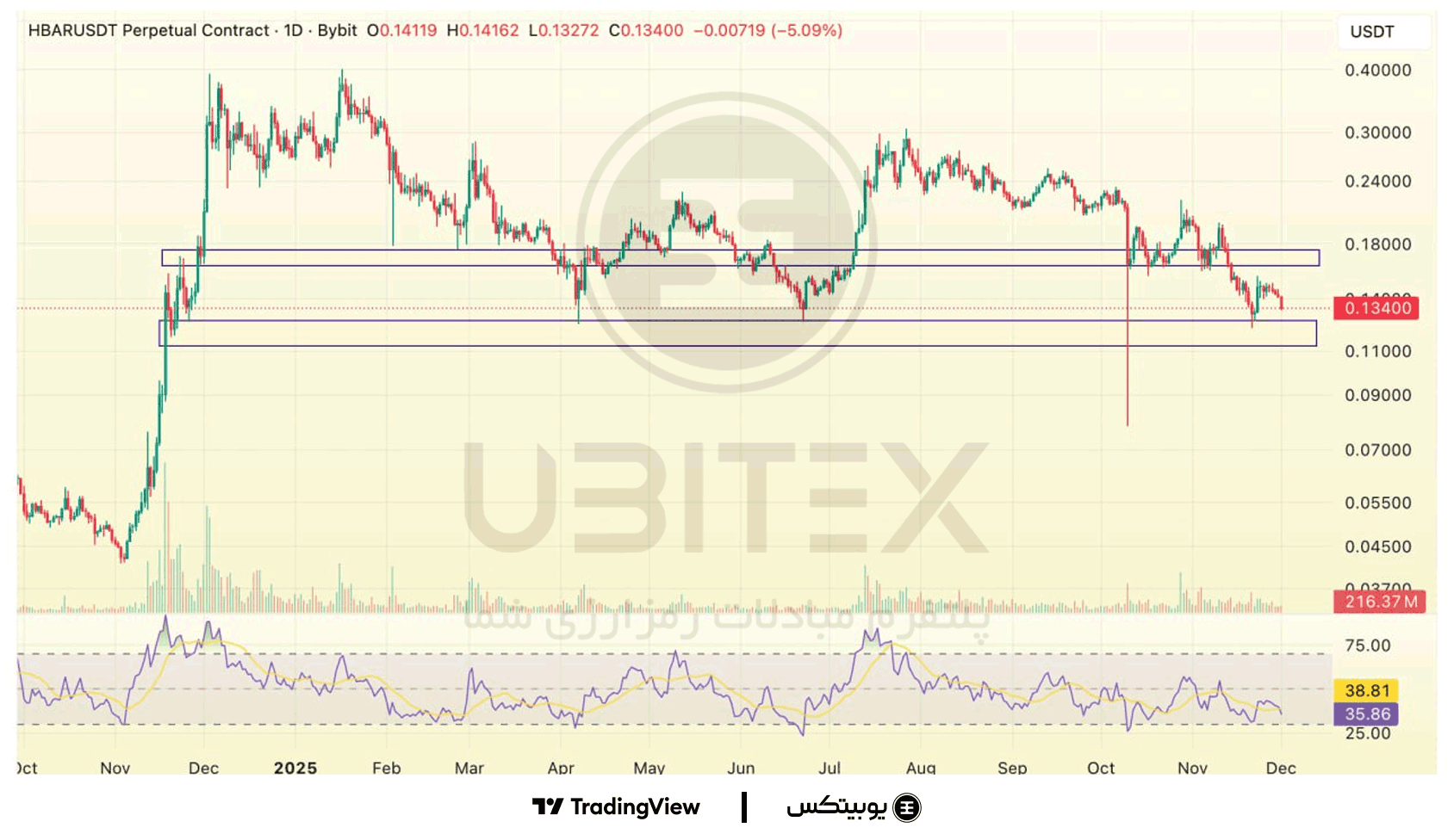 هدرا هش گراف: ارز hbar در مسیر اصلاح بوده و اکنون بالای حمایت ۰.۱۱۲–۰.۱۲۶ نوسان میکند. تا زمانی که این ناحیه حفظ شود امکان بازگشت تا ۰.۱۶۳–۰.۱۷۵ وجود دارد؛ اما شکست ۰.۱۱۲ میتواند ریزش بیشتری را فعال کند.