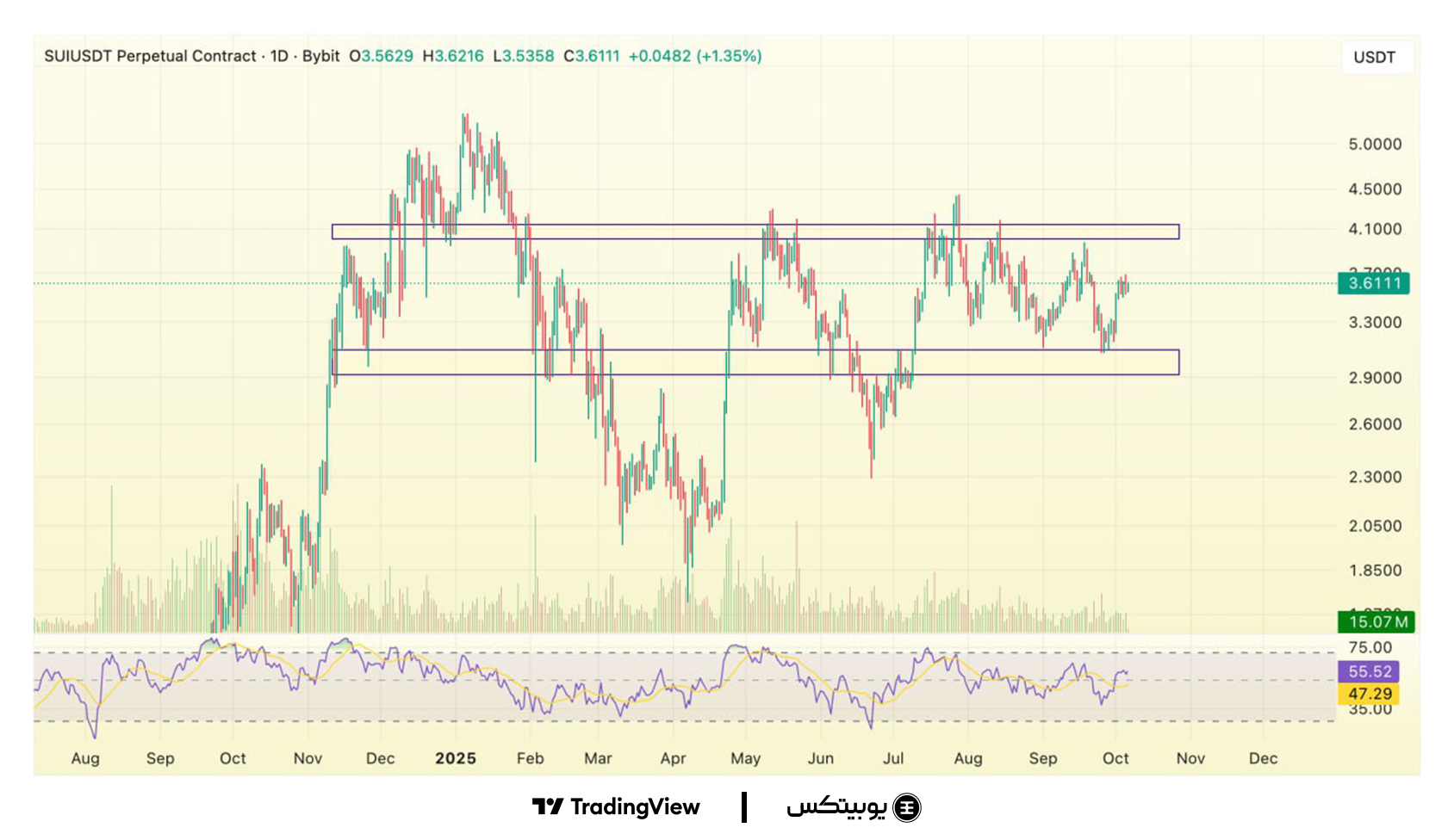 سویی: سویی در حال نزدیک شدن به محدودهای حساس است. بازه ۲.۹ تا ۳.۱ دلار بهعنوان حمایت مهم عمل میکند و میتواند مانع ریزش بیشتر شود. در سمت مقابل، محدوده ۴.۰ تا ۴.۱۴ دلار مقاومت قدرتمند این رمزارز است که عبور از آن احتمال آغاز یک موج صعودی تازه را تقویت میکند.