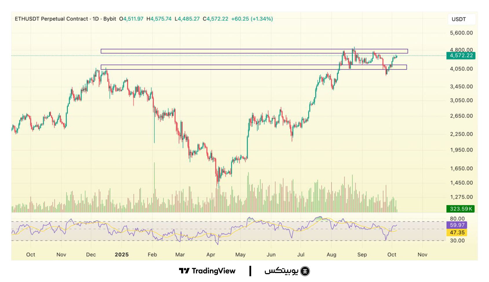 اتریوم: اتریوم در فاز تثبیت کوتاه مدت قرار دارد و محدوده حمایتی آن بین ۴,۰۴۰ تا ۴,۲۱۱ دلار قرار گرفته است. در صورت حفظ این سطح، احتمال صعود تا محدوده مقاومتی ۴,۶۷۵ تا ۴,۸۵۰ دلار وجود دارد. واکنش قیمت به این سطوح میتواند مسیر بعدی روند را تعیین کند.