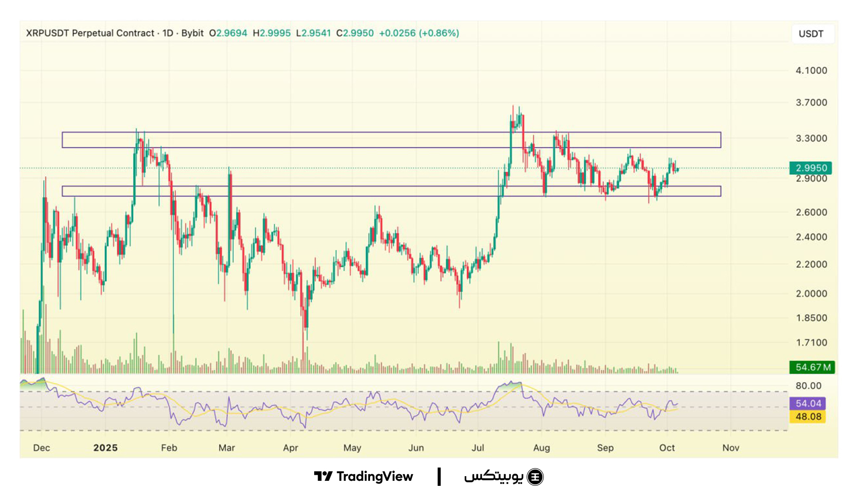 ریپل: برای ریپل محدوده ۲.۷۳ تا ۲.۸۲ دلار بهعنوان حمایت اصلی شناخته میشود و واکنش قیمت به این سطح میتواند تعیینکننده ادامه روند باشد. در سوی مقابل، ناحیه ۳.۱۹ تا ۳.۳۶ دلار نقش مقاومت مهم را ایفا میکند و عبور از آن میتواند آغازگر موج جدیدی از صعود باشد.