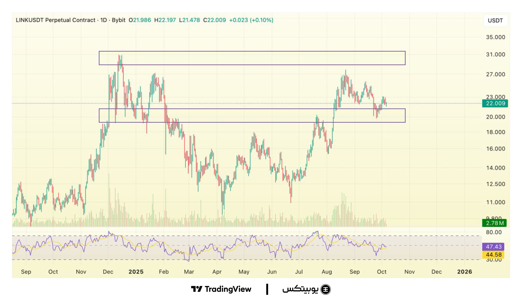 چین لینک: برای چینلینک سطح ۱۹.۲۶ تا ۲۱.۲ دلار بهعنوان حمایت کلیدی عمل میکند و میتواند مانع افت بیشتر قیمت شود. مقاومت مهم این رمزارز نیز در بازه ۲۸.۸ تا ۳۱.۷ دلار قرار دارد که عبور از آن میتواند روند صعودی جدیدی را آغاز کند.