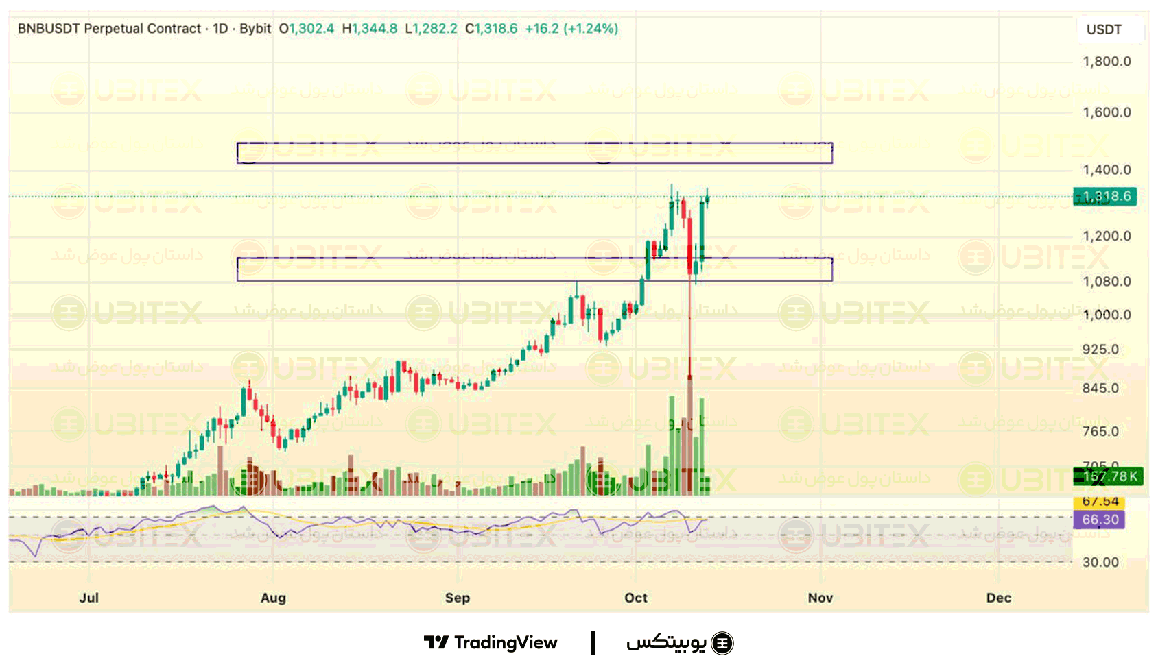بایننس کوین: بایننس کوین در آستانهی یک محدوده کلیدی قرار دارد. ناحیه حمایتی این رمزارز بین ۱,۰۸۴ تا ۱,۱۴۳ دلار قرار گرفته و میتواند نقش مهمی در حفظ روند فعلی بازی کند. مقاومت اصلی نیز در محدوده ۱,۴۲۰ تا ۱,۴۹۲ دلار قرار دارد و شکست آن میتواند مسیر را برای ادامهی رشد باز کند.