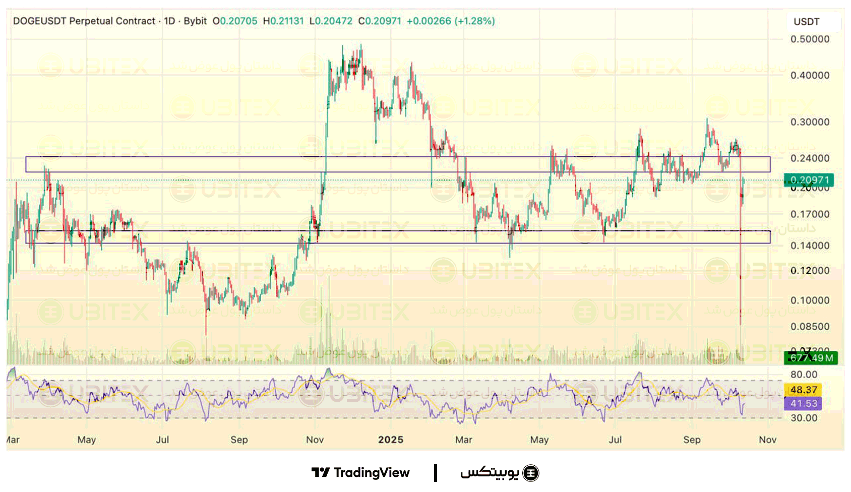 دوج کوین: دوج کوین در آستانه یک ناحیه تصمیمگیری قرار دارد. محدوده حمایتی بین ۰.۱۴۲ تا ۰.۱۵۳ دلار میتواند نقش مهمی در حفظ روند فعلی ایفا کند. در صورتی که قیمت موفق به عبور از محدوده مقاومتی ۰.۲۲ تا ۰.۲۴ دلار شود، احتمال تقویت روند صعودی افزایش مییابد.
