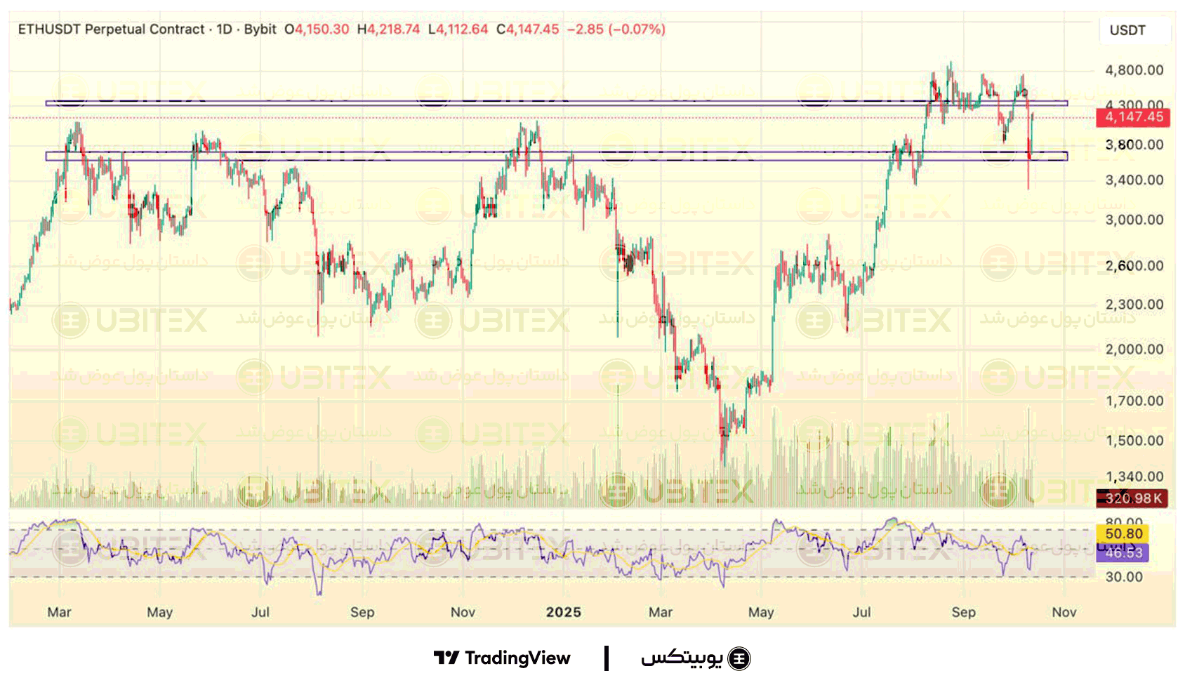 اتریوم: اتریوم در محدودهای مهم در حال نوسان است. حمایت فعلی در بازه ۳,۶۲۴ تا ۳,۷۲۵ دلار قرار دارد که میتواند نقش کف قیمتی را ایفا کند. همچنین محدوده مقاومتی در بازه ۴,۳۰۰ تا ۴,۳۷۰ دلار قرار گرفته و عبور از آن میتواند مسیر رشد اتریوم را هموارتر کند.