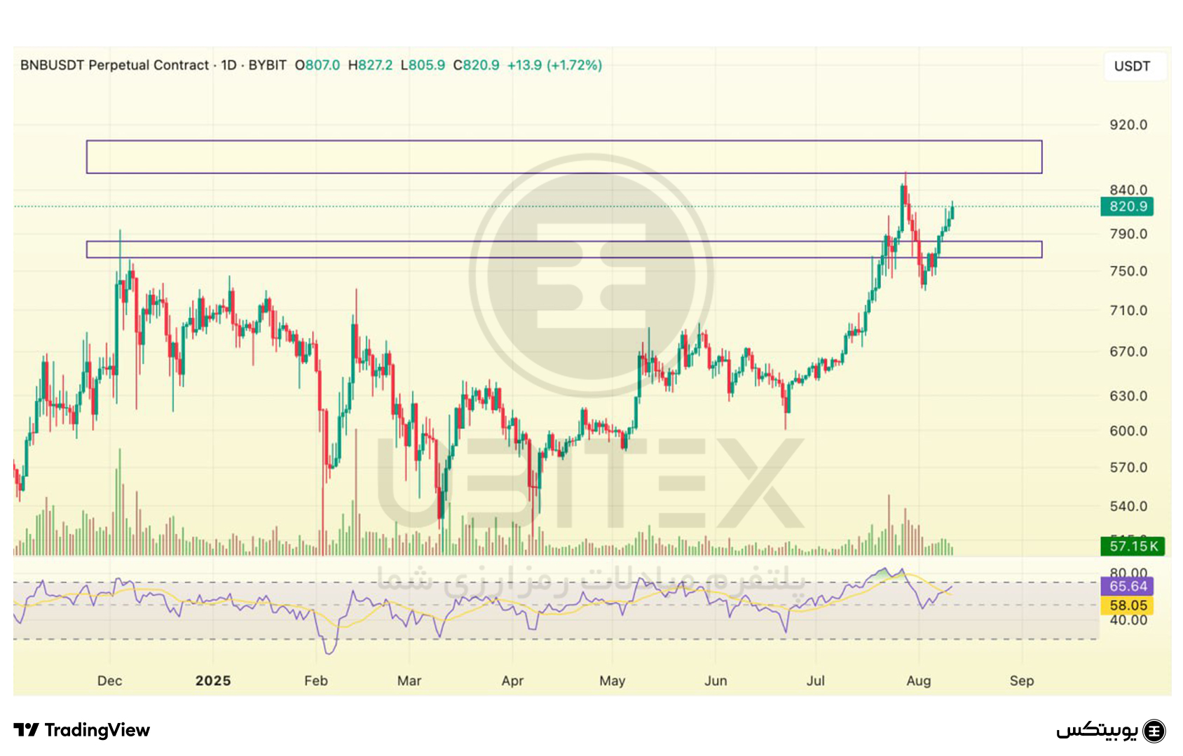 بایننس کوین: محدوده حمایتی بایننس کوین بین ۷۶۳ تا ۷۸۰ دلار قرار دارد و محدوده مقاومتی آن بین ۸۶۰ تا ۹۰۰ دلار است. عبور از مقاومت میتواند نشانهای از شروع روند صعودی جدید باشد.