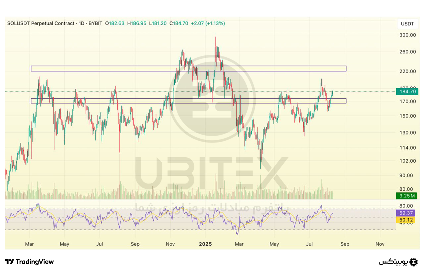 سولانا: سولانا این هفته حمایت خود را در بازه ۱۶۷ تا ۱۷۳ دلار و مقاومتش را در محدوده ۲۲۰ تا ۲۳۰ دلار دارد. این سطوح میتوانند نقاط مهم واکنش قیمت باشند.