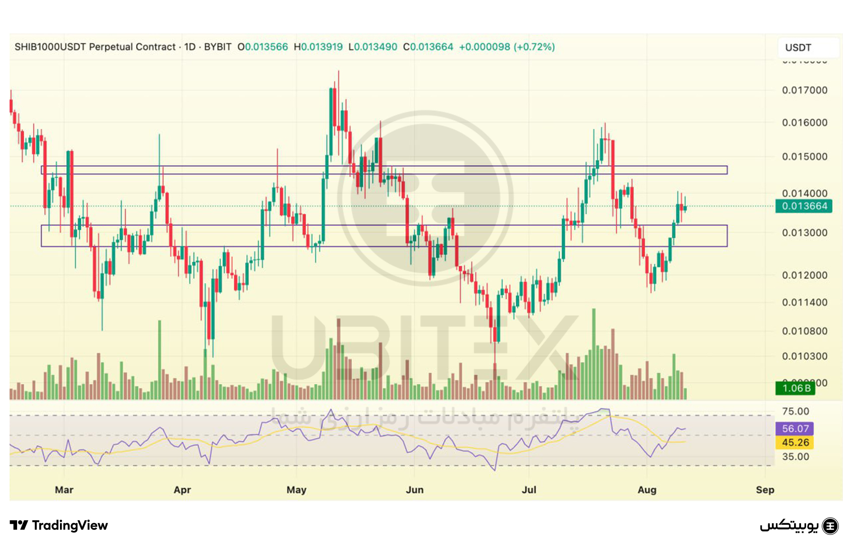 شیبا: محدوده حمایتی شیبا بین ۰.۰۰۰۰۱۲۶ تا ۰.۰۰۰۰۱۳۱ قرار دارد و محدوده مقاومتی آن بین ۰.۰۰۰۰۱۴۵ تا ۰.۰۰۰۰۱۴۷ است. حفظ این حمایتها برای ثبات قیمت حیاتی است و عبور از مقاومت میتواند نشانه ادامه روند مثبت باشد.