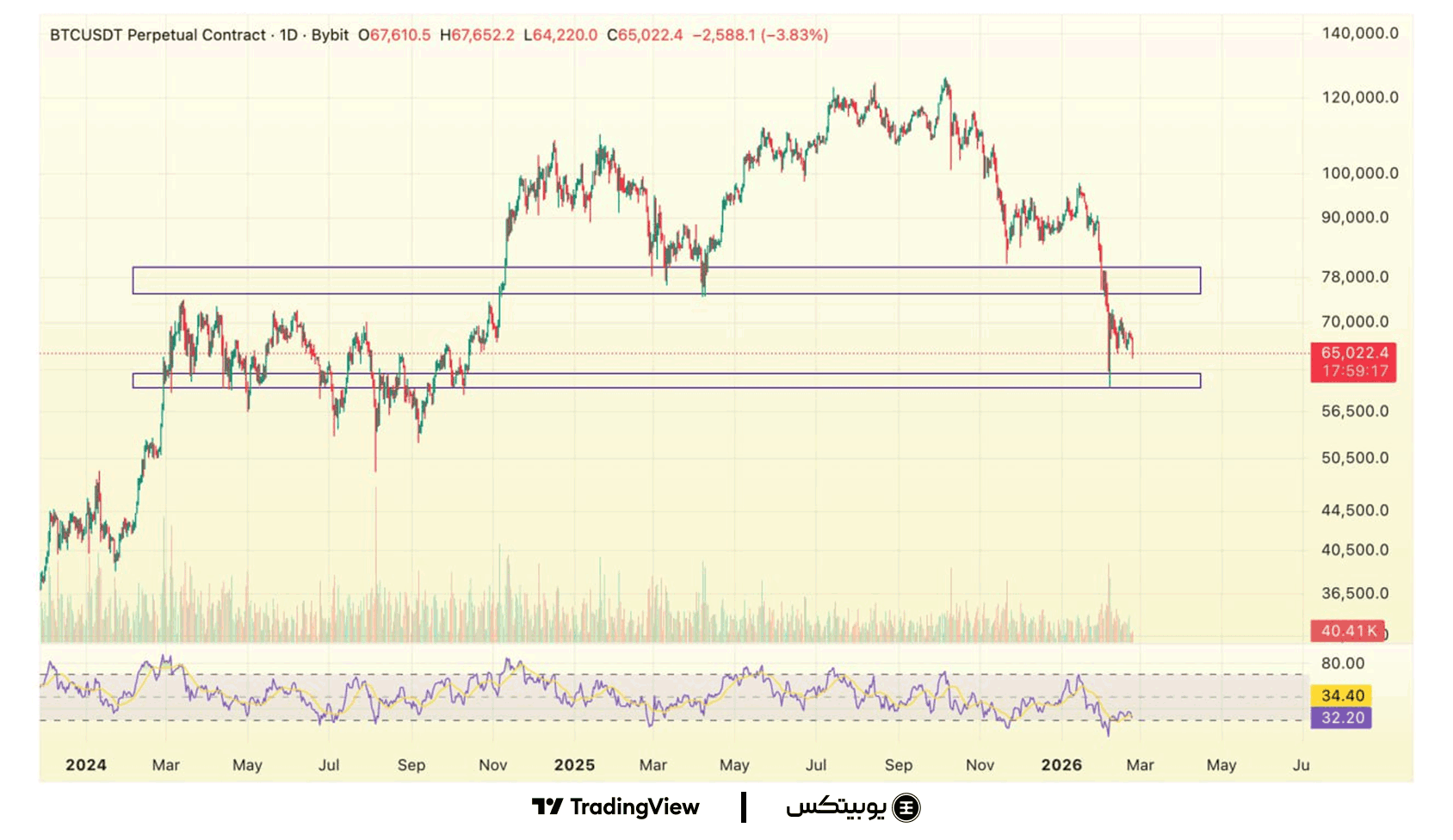 • تثبیت بیتکوین بالای 65–68k میتواند مسیر یک رالی اصلاحی تا 74–78k را باز کند؛ اما شکست این ناحیه، فشار فروش جدیدی را فعال میکند.