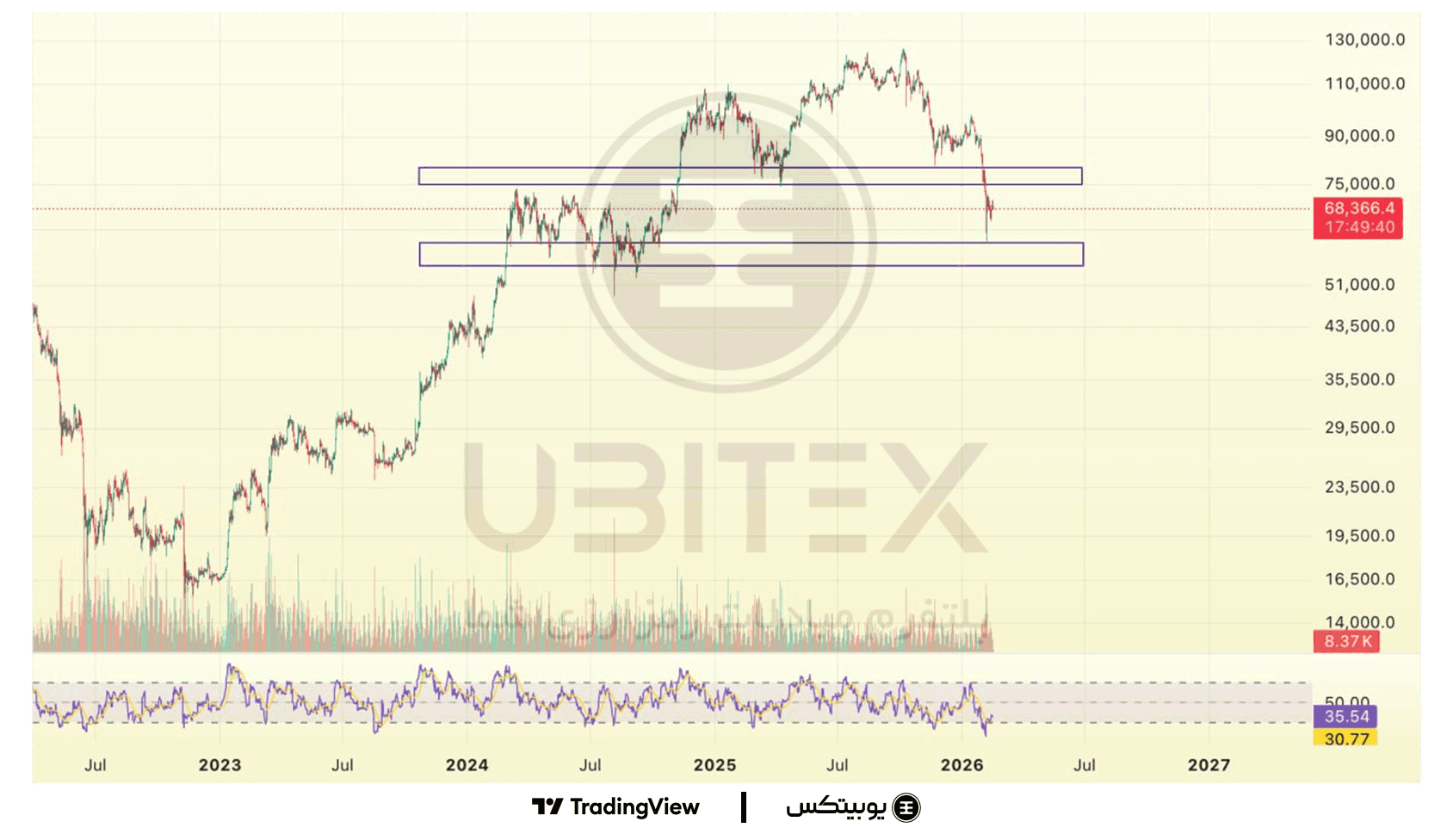 بیت کوین پس از ریزش تند، به محدودهی حمایتی ۵۵–۶۰ هزار دلار نزدیک شده؛ جایی که واکنش قیمتی میتواند مسیر بعدی بازار را مشخص کند.در صورت حفظ این ناحیه، سناریوی نوسان و بازگشت تدریجی تا مقاومت ۷۵–۸۰ هزار دلار فعال میشود؛ از دسترفتن حمایت، ریسک فشار فروش بیشتر را بالا میبرد.