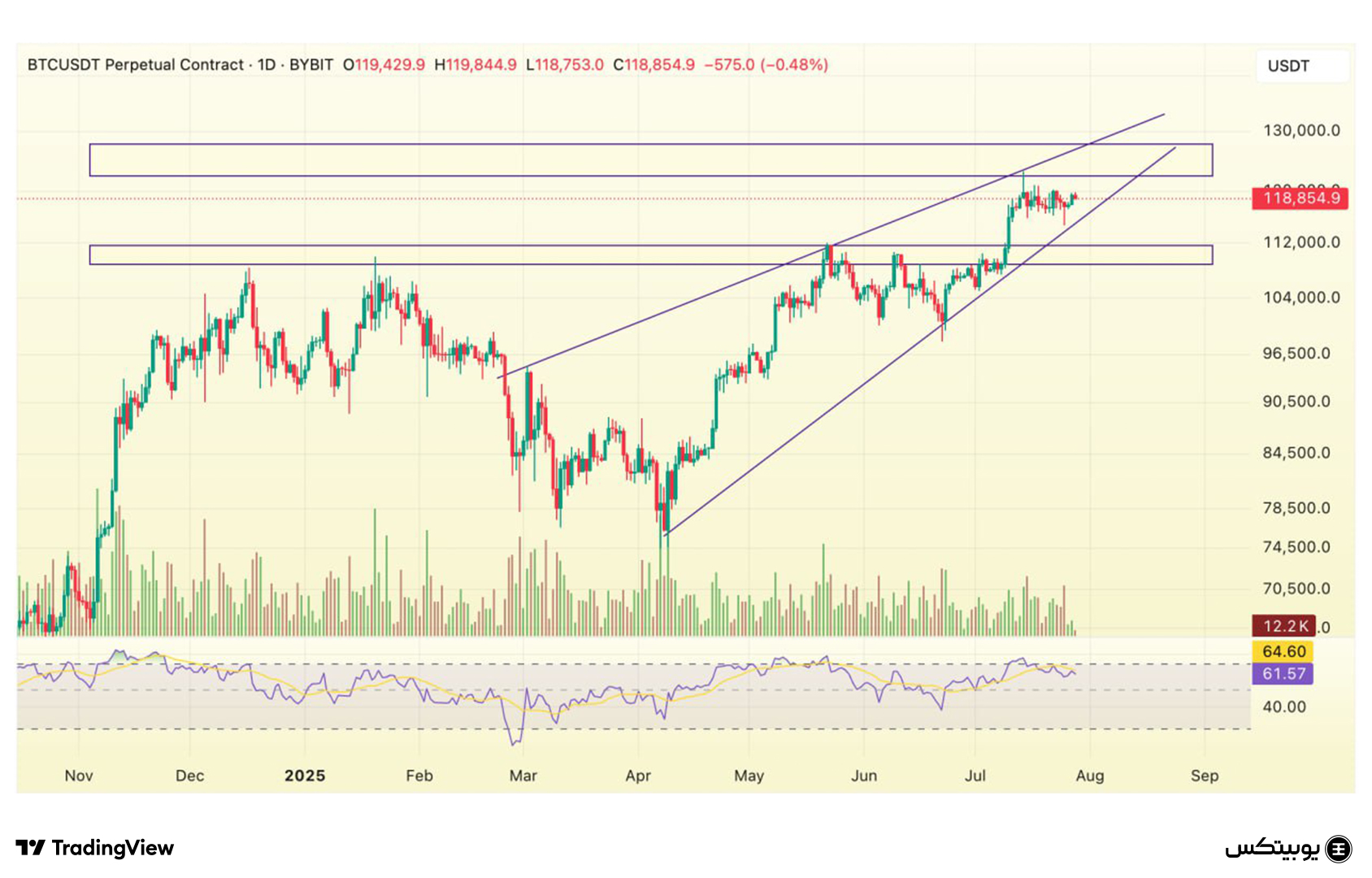 یکی از نکات کلیدی هفته جاری، بسته شدن کندل ماه جولای است. تا این لحظه، این کندل با رشدی بیش از ۱۰ درصد همراه بوده و به احتمال زیاد با رنگ سبز و مثبت بسته خواهد شد. با این حال، بازار رمزارزها همیشه مستعد اصلاحات کوتاهمدت است و یک اصلاح کوچک میتواند مسیر حرکتی بازار را بهطور قابل توجهی تغییر دهد.