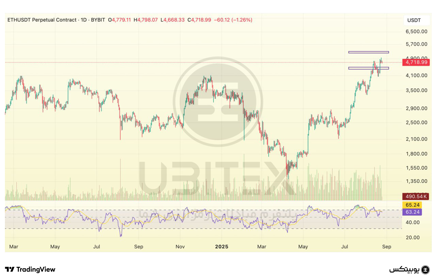 اتریوم: محدوده حمایتی اتریوم بین ۴۳۹۰ تا ۴۴۹۰ دلار قرار دارد. محدوده مقاومتی آن نیز در بازه ۵۲۰۰ تا ۵۳۰۰ دلار مشخص شده است. حرکت قیمت در نزدیکی این سطوح میتواند تعیینکننده ادامه روند باشد؛ شکست مقاومت میتواند زمینهساز رشد بیشتر شود، در حالی که از دسترفتن حمایت احتمال اصلاح را افزایش میدهد.