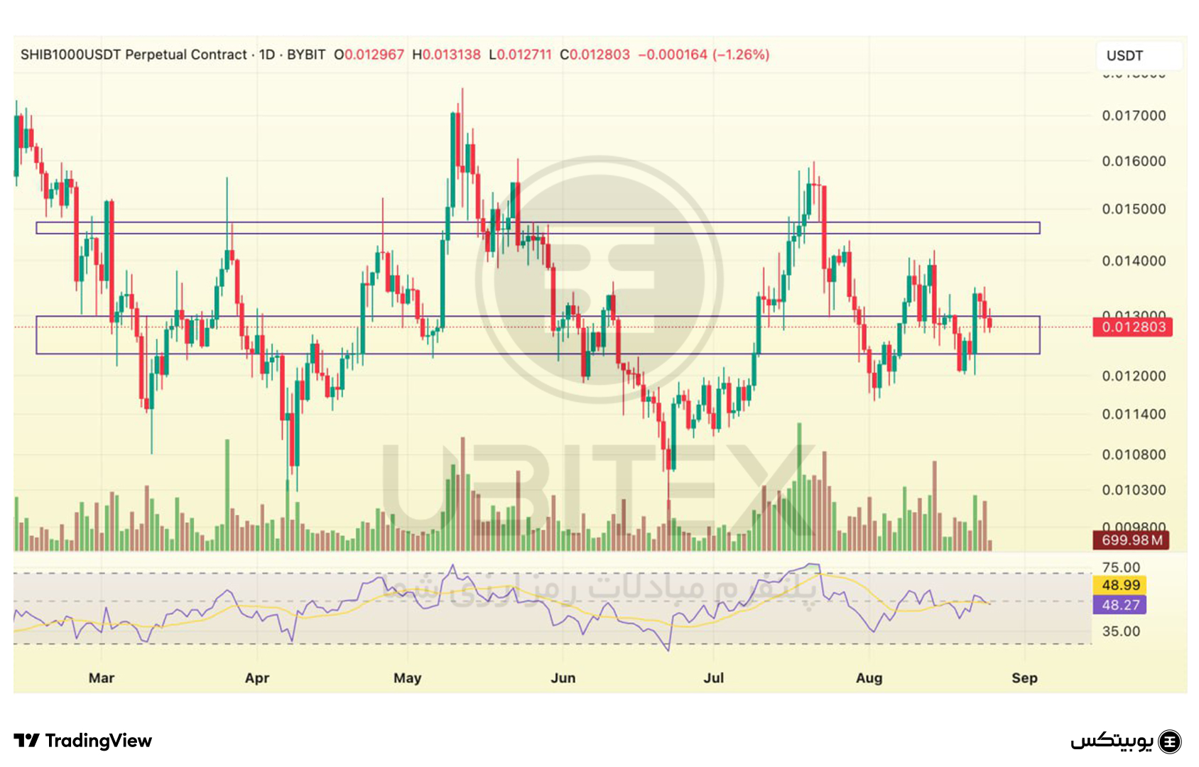 شیبا: محدوده حمایتی شیبا بین ۰.۰۰۰۰۱۲۳ تا ۰.۰۰۰۰۱۳۰ دلار و محدوده مقاومتی آن در ۰.۰۰۰۰۱۴۵ تا ۰.۰۰۰۰۱۴۷ دلار قرار دارد. این نقاط میتوانند برای بررسی روند قیمت و تصمیمگیریهای معاملاتی مفید باشند.