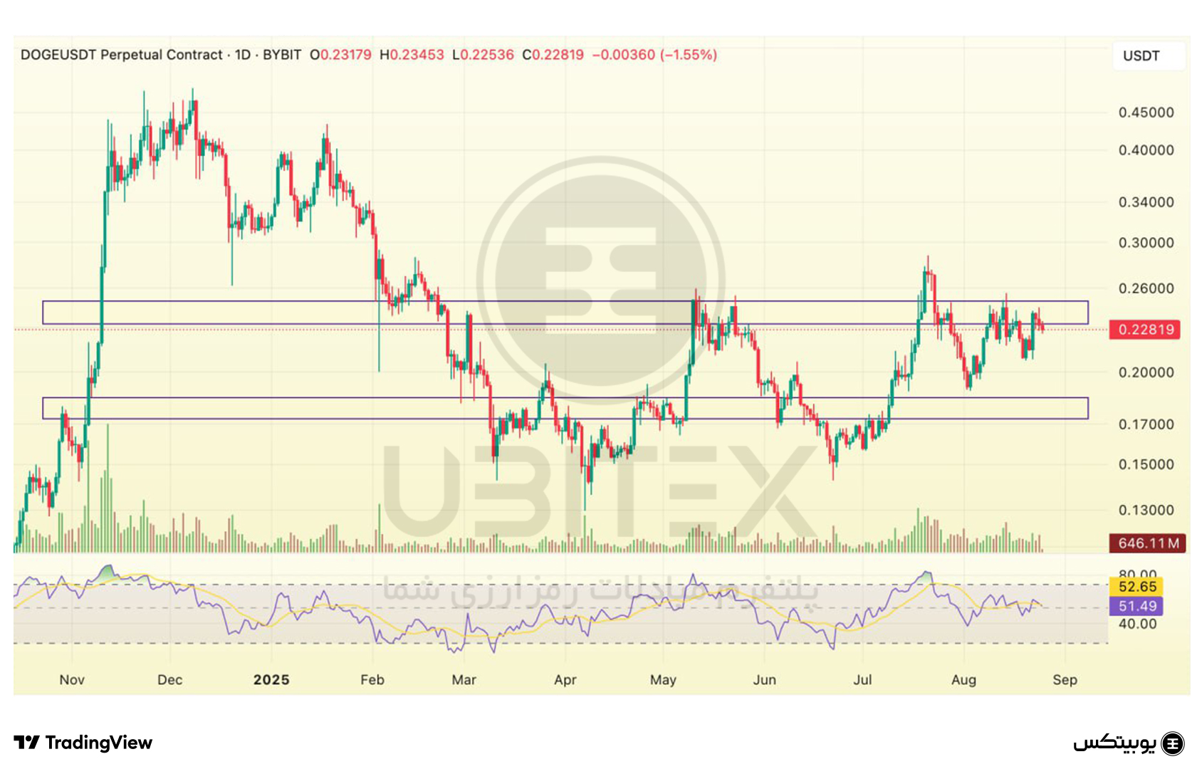 دوج کوین: محدوده حمایتی دوج کوین بین ۰.۱۷۲ تا ۰.۱۸۴ دلار است و محدوده مقاومتی آن در ۰.۲۳ تا ۰.۲۵ دلار قرار دارد. این سطوح میتوانند به معاملهگران کمک کنند تا نقاط مناسب ورود و خروج را شناسایی کرده و روند بازار را بهتر تحلیل کنند.