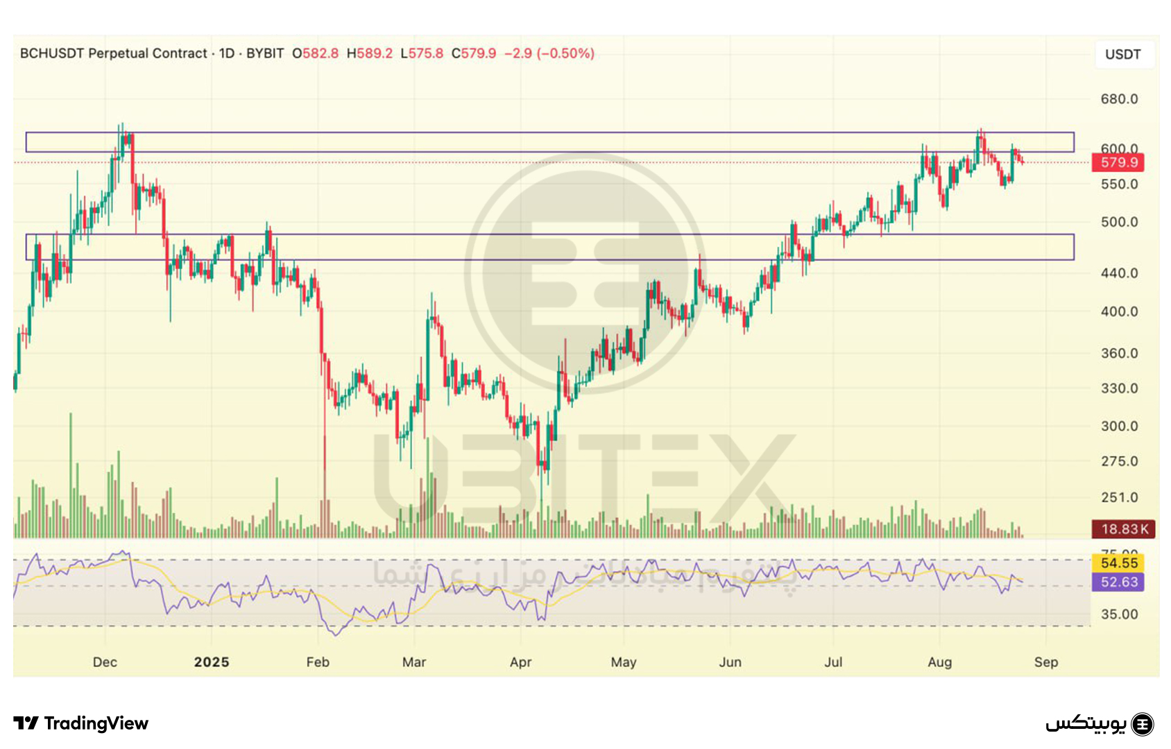 بیتکوین کش: محدوده حمایتی بیتکوین کش بین ۴۵۵ تا ۴۸۵ دلار و محدوده مقاومتی آن در ۵۹۲ تا ۶۳۰ دلار قرار دارد. شناخت این محدودهها به معاملهگران کمک میکند تا نقاط کلیدی بازار را تحلیل کرده و فرصتهای معاملاتی بهتری شناسایی کنند.