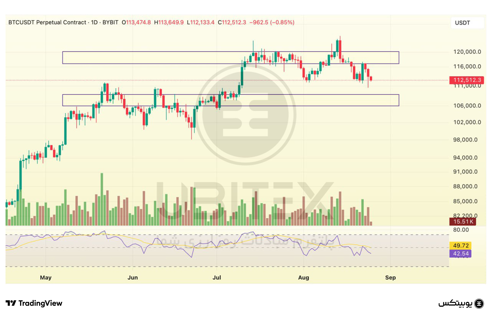 بیتکوین: محدوده حمایتی بیتکوین بین ۱۰۶,۰۰۰ تا ۱۰۸,۸۰۰ دلار و محدوده مقاومتی آن در ۱۲۰,۰۰۰ تا ۱۲۳,۰۰۰ دلار قرار دارد. در صورت عبور از مقاومت، احتمال ادامه روند صعودی وجود دارد اما نزدیکشدن به مرز حمایتی میتواند نشانهای از اصلاح کوتاهمدت باشد.