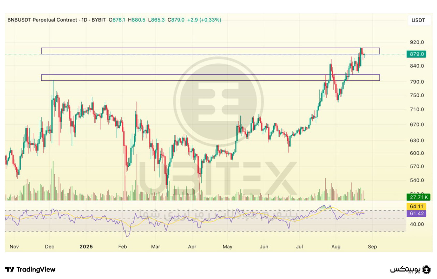 بایننس کوین: محدوده حمایتی بایننس کوین بین ۷۹۳ تا ۸۱۲ دلار و محدوده مقاومتی آن در ۸۷۸ تا ۹۰۰ دلار قرار دارد. این محدودهها میتوانند به معاملهگران برای شناسایی نقاط کلیدی بازار و تصمیمگیری هوشمندانه کمک کنند.
