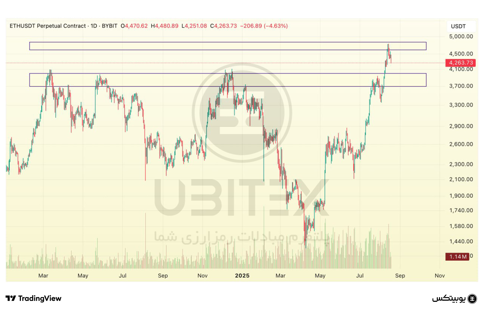 اتریوم: محدوده حمایتی در بازه ۳۷۰۰ تا ۳۹۹۰ دلار قرار دارد و محدوده مقاومتی آن بین ۴۶۰۰ تا ۴۸۵۰ دلار تعریف شده است. این سطوح میتوانند بهعنوان نقاط کلیدی برای تصمیمگیری معاملهگران عمل کنند.